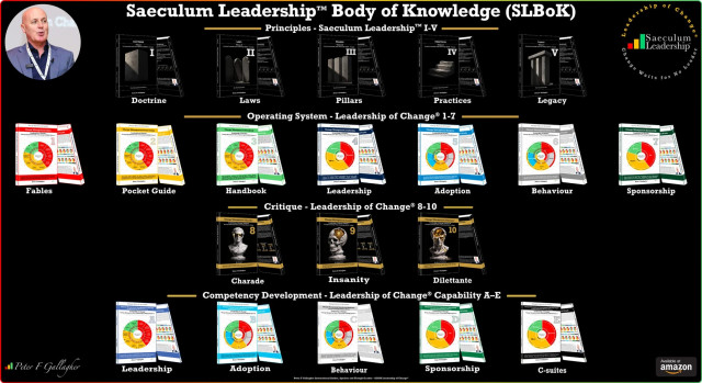 Saeculum LeadershipTM is Peter’s defining contribution: a doctrinal architecture built on the Saeculum LeadershipTM Body of Knowledge (SLBoK). SLBoK establishes the language, principles, and stewardship disciplines required for leaders to think and act across four generational horizons. It integrates philosophy, governance, anthropology, and operational discipline into a unified canon for long term leadership.