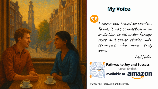 Travel is more than movement across borders; it is a quiet conversation between the soul and the world. In this cinematic reflection inspired by Pathway to Joy and Success, Adel Hafez shares a thought from his personal philosophy of connection, humanity, and the unseen threads that bind us together.