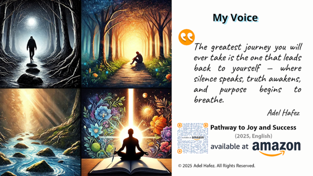 “The greatest journey you will ever take is the one that leads back to yourself — where silence speaks, truth awakens, and purpose begins to breathe.” — Adel Hafez