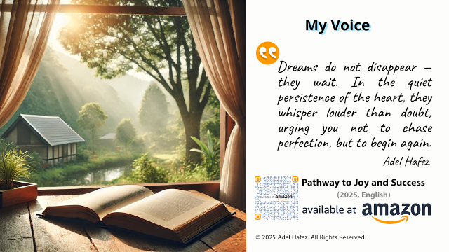 “Dreams do not disappear — they wait. In the quiet persistence of the heart, they whisper louder than doubt, urging you not to chase perfection, but to begin again.” — Adel Hafez