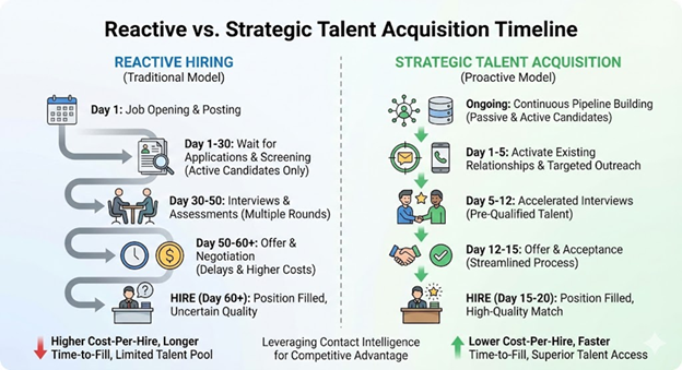 The infrastructure enabling this advantage isn't complicated. It's contact intelligence, systematic pipeline building, and relationship-based recruiting discipline. But like most strategic advantages, it's simple in concept and difficult in execution.