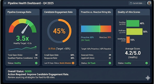 They measure proactive versus reactive hiring ratios. What percentage of hires came from pre-existing pipelines versus emergency postings? How does quality-of-hire compare between these sources?