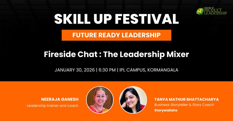 The Skill Up Festival organised by Institute of Product Leadership is hosting a Leadership Mixer to enable participants to connect with Industry Leaders. Tanya M Bhattacharya and I are pleased to be on this Fireside chat to explore and exchange our thoughts, experiences, perspectives and insights(with a lot of stories thrown in)!
