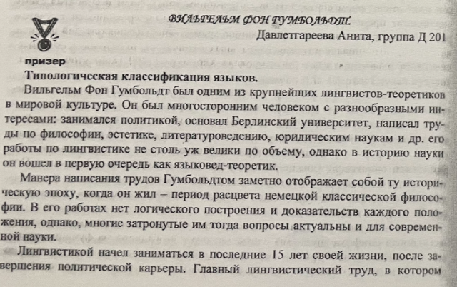 Grey (Davledgareeva), A. (2006). Wilhelm von Humboldt. In History of the Culture of the Countries of the Studied Language. Linguistics: Proceedings of the 3rd Student Scientific and Practical Conference, Kazan, March 17, 2006 (pp. 238-241). Kazan: Nizhny Novgorod State Linguistic University (Kazan branch).