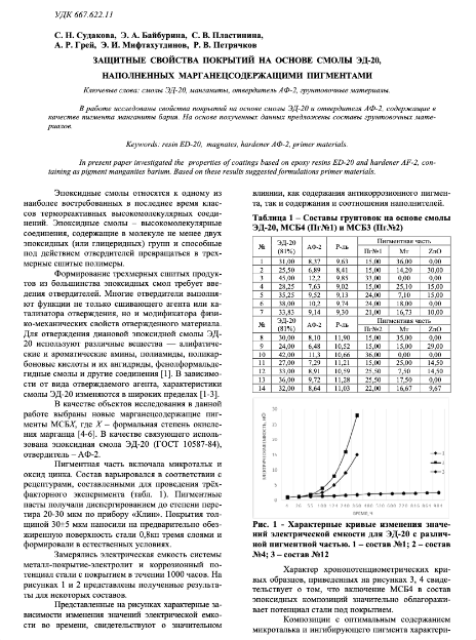 The Properties of Coatings Based on Epoxy Resins ED-20 and Hardener AF2 Containing as Pigment Manganite Barium [article, peer-reviewed journal]