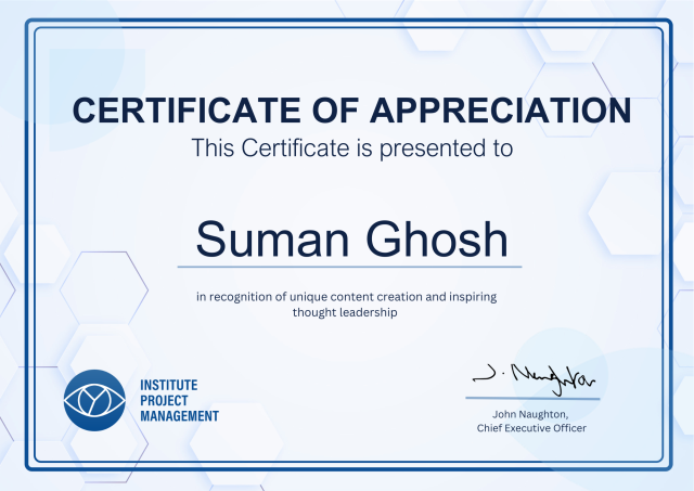 Beyond my professional achievements, I am an influential voice in project management, acknowledged as a Top Voice in Project Management by LinkedIn. My contributions to the International Association of Project Managers and the Institute of Project Management showcase my dedication to sharing insights and best practices.