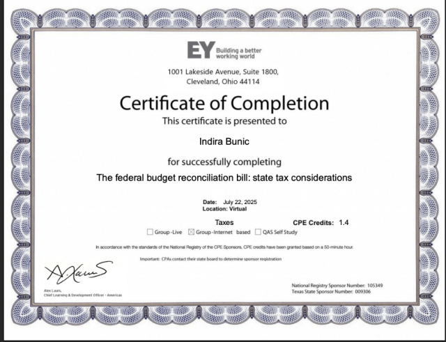 Additional Education: IBDC.D Continuing Professional Education (CPE) credits due to your Additional Education / Certificates