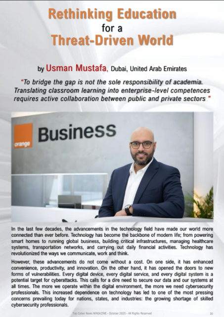 Usman Mustafa is an award-winning technology executive, thought leader, and acknowledged judge, and a speaker known for driving groundbreaking advancements in cybersecurity and digital transformation. With over 15 years of global experience, he has led over 30 large-scale projects, demonstrating expertise in secure network design, enterprise architecture, and strategic consulting for top-tier public and private sector clients. His leadership at Orange Business has cemented his reputation for achieving exceptional results in high-stakes environments, consistently exceeding revenue targets and acquiring strategic accounts.