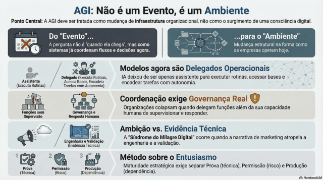 Na Carta anterior, argumentei que AGI não deve ser tratada como um evento cinematográfico, mas como uma mudança infraestrutural em curso. O que está se transformando não é a consciência da máquina, mas a arquitetura de coordenação entre agentes autônomos. O debate sério não é escatológico. É organizacional.