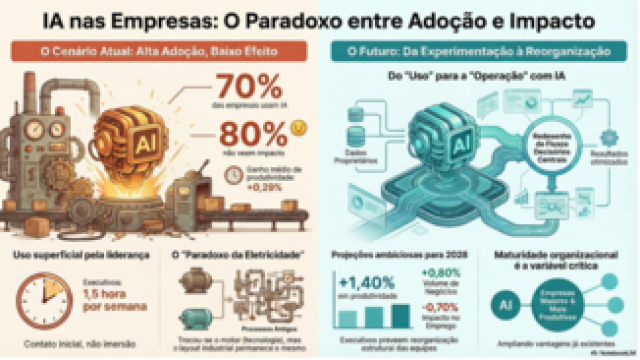A adoção é alta. O efeito, por enquanto, é baixo. Isso não invalida a revolução. Mas muda o estágio da conversa.