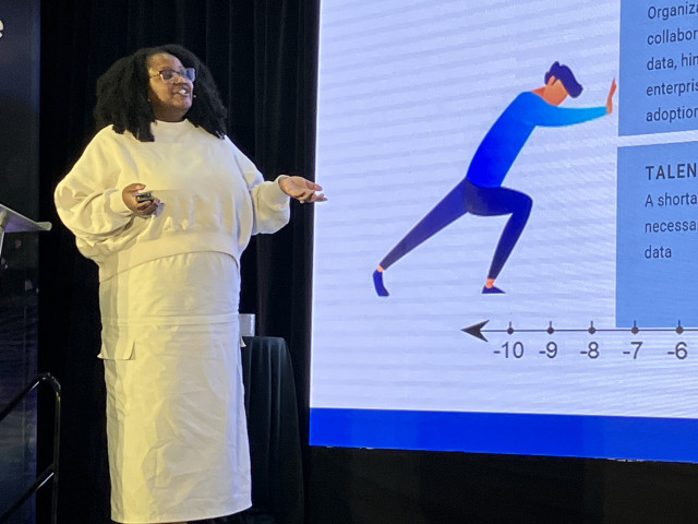 Using the metaphor of preparing for a marathon, she illustrated how organizations attempt data transformation before securing leadership buy-in, defining business outcomes, or building adoption plans resulting in what she calls the "loop of death"