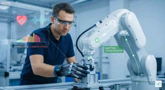This blog introduces CogniEdge’s breakthrough CEDR framework — a neuroadaptive robotics system powered by a patent‑pending Human State Vector (HSV) engine. Moving far beyond traditional reactive safety, CEDR enables robots to understand human physiological, cognitive, emotional, visual, and personality-driven states in real time. By running this intelligence locally on edge hardware, the system delivers sub‑30 ms responses that let robots anticipate fatigue, frustration, or overload and adapt their behavior proactively. It marks a major step toward Industry 5.0, where machines don’t just work beside us — they perceive us, support us, and become true human‑centric teammates.
