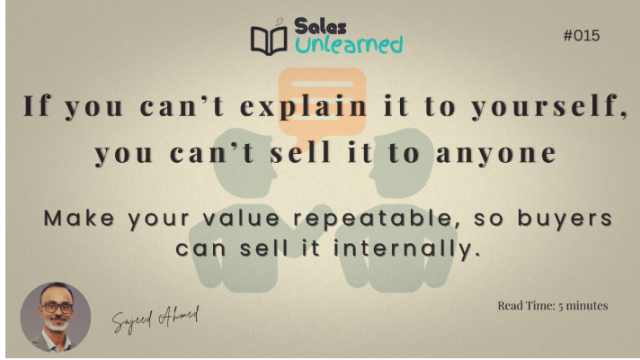 This is not a persuasion problem. It is a clarity problem. Selling, at its best, is the value delivery system. It helps the right people understand what you built, why it matters, and when it is relevant to them. When that clarity is missing, buyers do not reject you. They delay the decision because they cannot explain the value to themselves or to others.