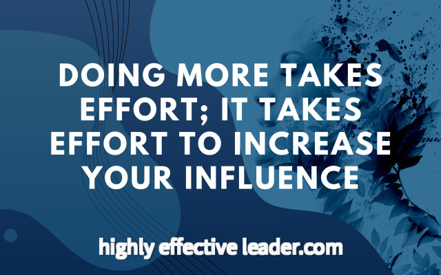 To be a highly effective leader, you must increase your influence with your team. To increase your influence you must develop your character, and you must also develop the character of each of your team members, so that they can increase their influence.