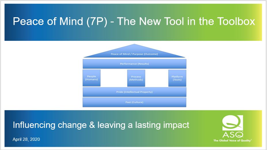 Description: Through this interactive sessions, the presenter will share thought leader insights into a new way to view the leadership of quality professionals. We pride ourselves in being subject matter experts in our craft, but miss the mark when we can't influence people to action. It requires a shift in mindset, reflection and development of new skills to reach out to leaders and form relationships. Through these relationships we are trying to influence both on a functional level as well as an emotional level. When the quality professional ultimately learns they are trying to assure "Peace of Mind" for the business leader or business unit, the approach they take to leverage their technical skills to connect with people at an emotional level will drastically different. In this session, we share the stages & stories that I went through along with techniques that can raise the level of influence. The session is meant to be highly interactive so they can learn, ask questions, pose scenarios in a mini-mastermind enrichment session so all can benefit.