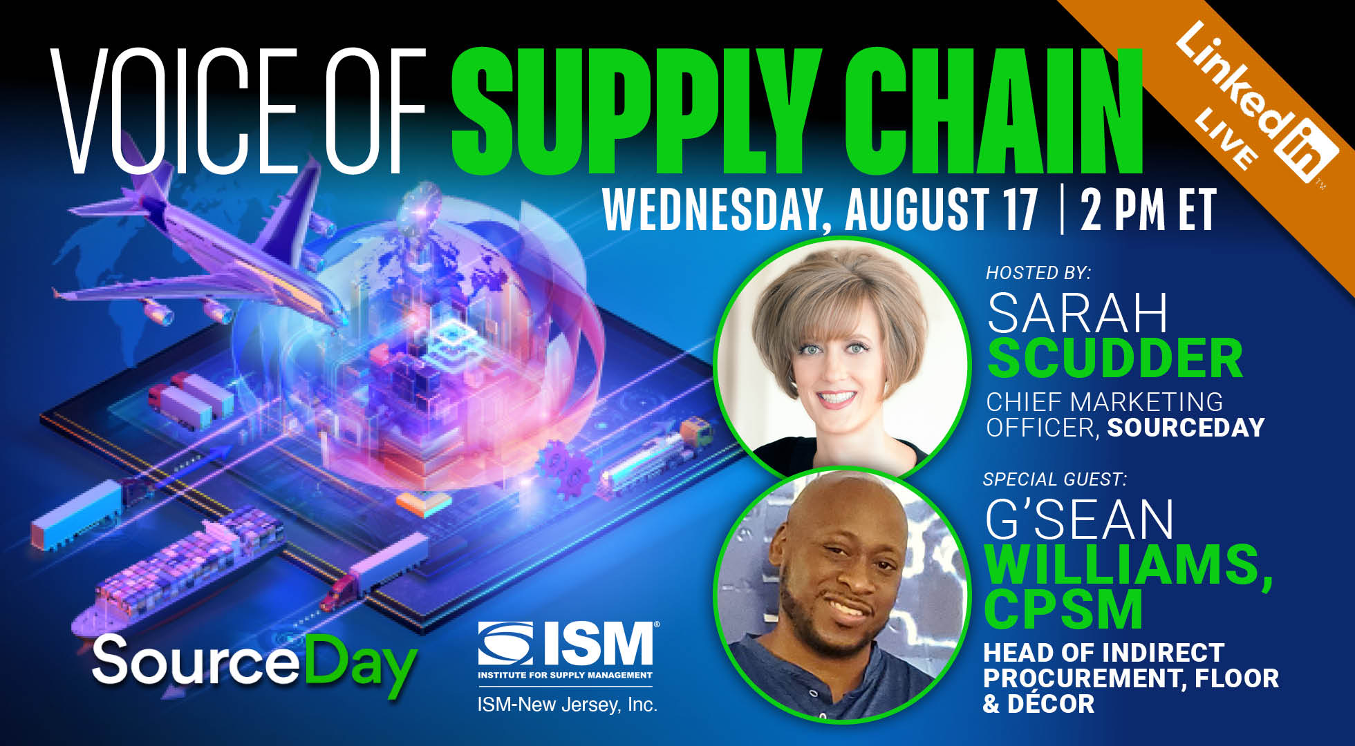 Location: Virtual via LinkedIn Live 2 - 3pm EST Date : August 17, 2022 - August 17, 2022 Organizer: SourceDay & Institute for Supply Management (ISM)-NJ
