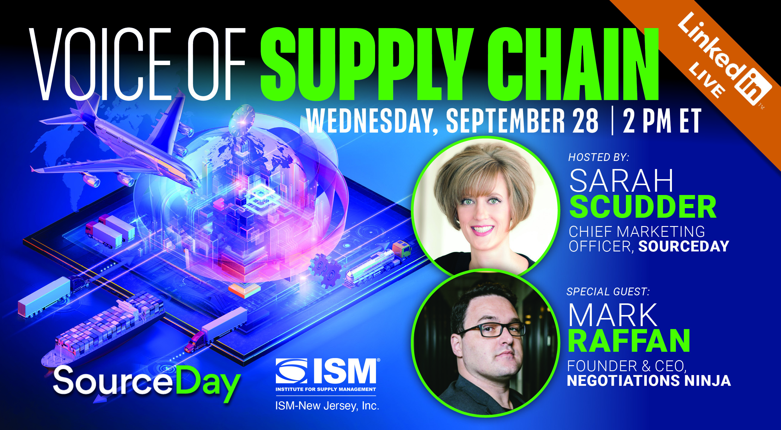 Location: Virtual via LinkedIn Live 2 - 3pm EST Date : September 27, 2022 - September 28, 2022 Organizer: SourceDay & Institute for Supply Management (ISM)-NJ