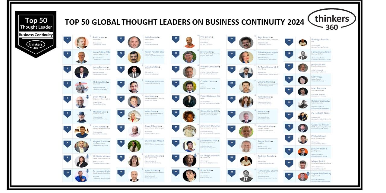 Here’s the Thinkers360 annual leaderboard for our top 50 global thought leaders and influencers on Business Continuity for 2024.